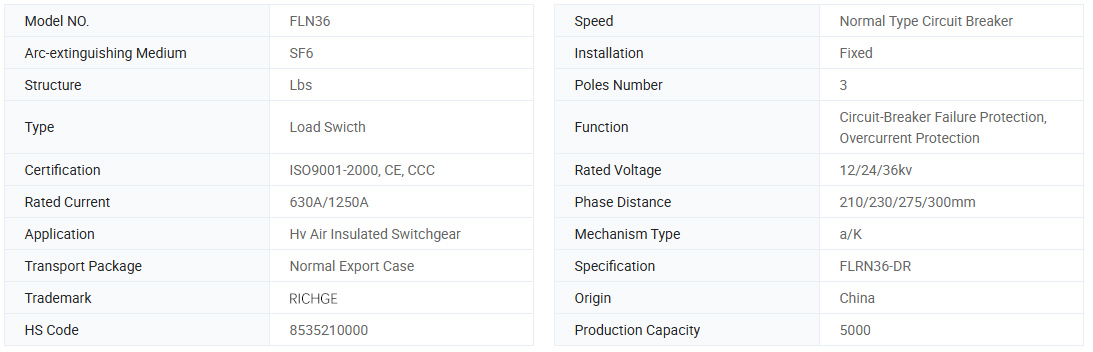 1 : FL (R) N36 Notranji MV SF6 Stikalo za obremenitev je notranja stikala z nazivno napetostjo 12kV, 24kV in 40,5kV, pri čemer uporabljate plin SF6 kot lok in izolacijski medij, vključno s tremi postajami zapiranja, odpiranje in ozemljitev. Ima značilnosti majhne velikosti, priročne namestitve in uporabe ter močno uporabnost za okolje.