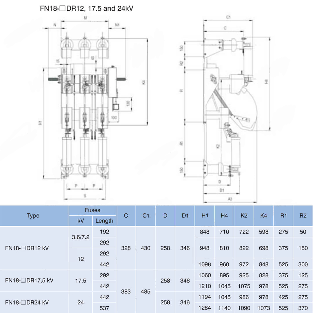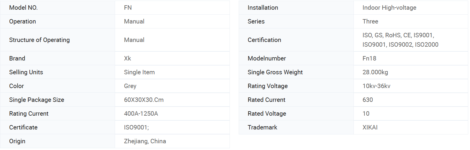 FN18 Stikala za obremenitev in kombinacije obremenitve obremenitve so visokonapetostne, visokozmogljive obremenitvene stikala, ki združujejo gasilje ob stisnjenem zraku in plinsko proizvedeno gašenje oblokov. Kombinacija stikala za obremenitev in varovalke združuje prednosti stikala za obremenitev s tiskanimi varovalki, da preklopite kakršen koli tok obremenitve do nazivnega prelomnega toka stikala za obremenitev in preklopite kakršen koli nadgrajen do nazivnega prelomnega toka kratkega kroga s pomočjo delovanja varovalke in njegovega impevarja.